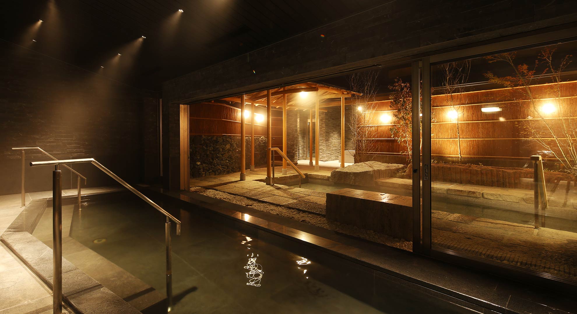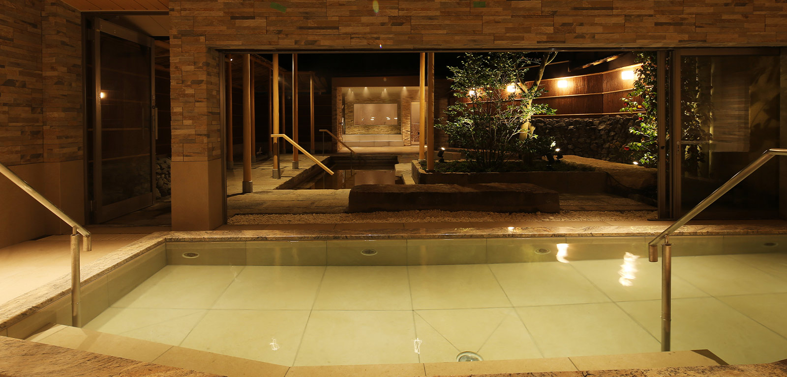 At the Tenjyukaku Hot Springs, which spring forth from 1,500 meters underground, you can experience a relaxing and moisturizing onsen that gently envelopes your skin. With both indoor and outdoor baths available, you can enjoy views of the changing seasons. This high-quality spring source is also suitable for medicinal use and is known as the "beauty bath," with many satisfied customers commenting on the gentle feel on their skin, which becomes smooth and moist after bathing. The warmth that permeates your body from the core is also pleasant and comforting. After taking your time to soak in the hot spring, you can further relax in the open resting area.